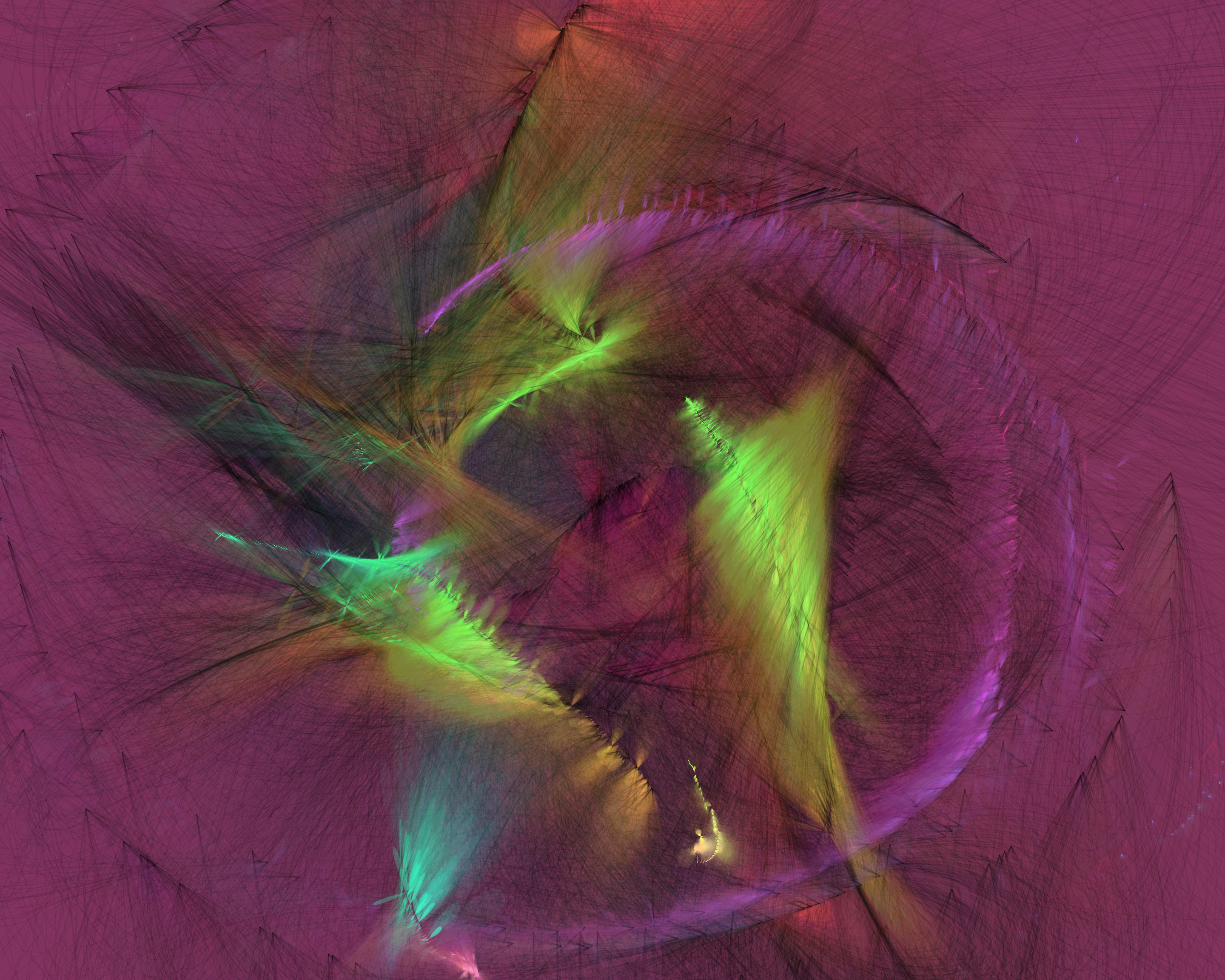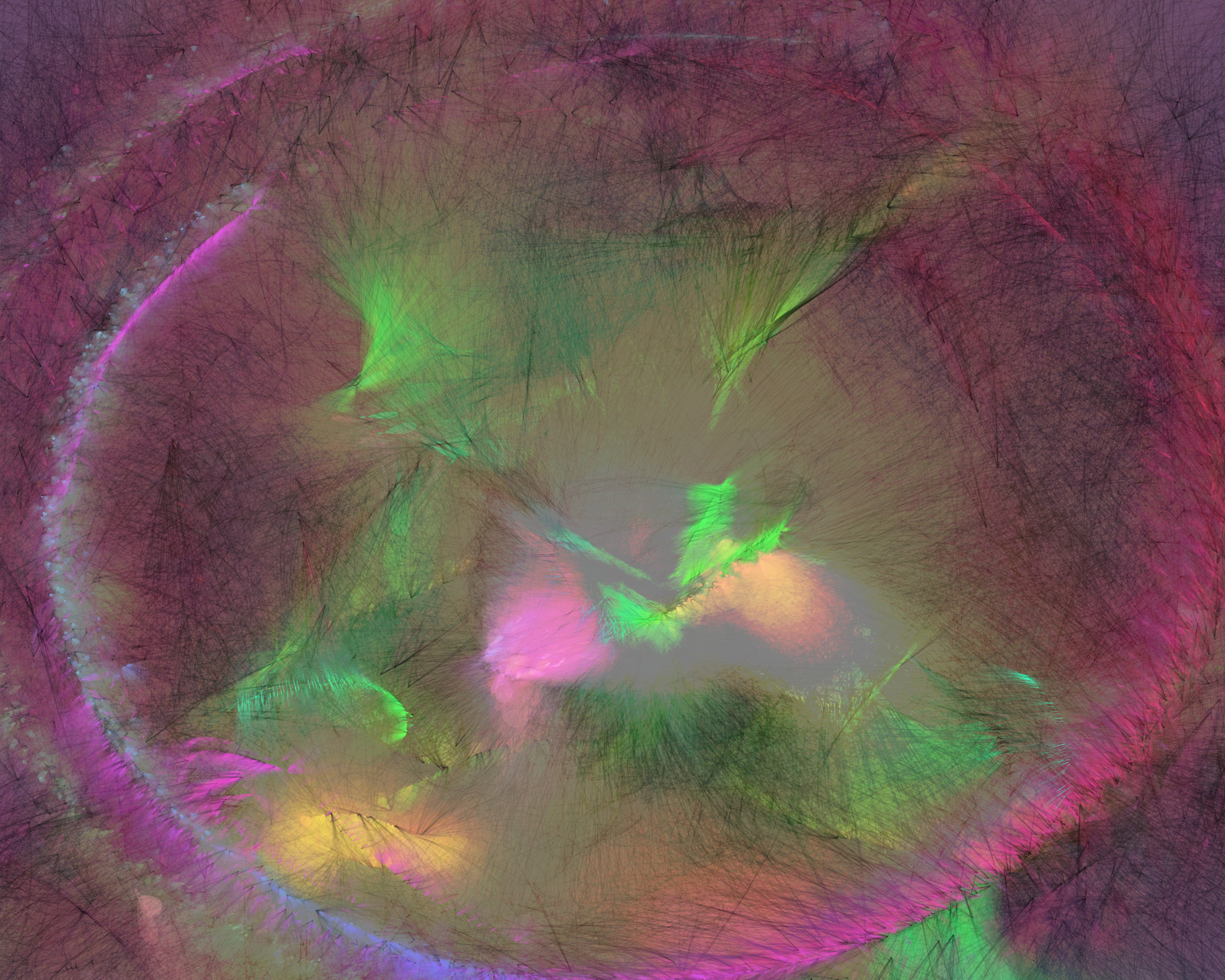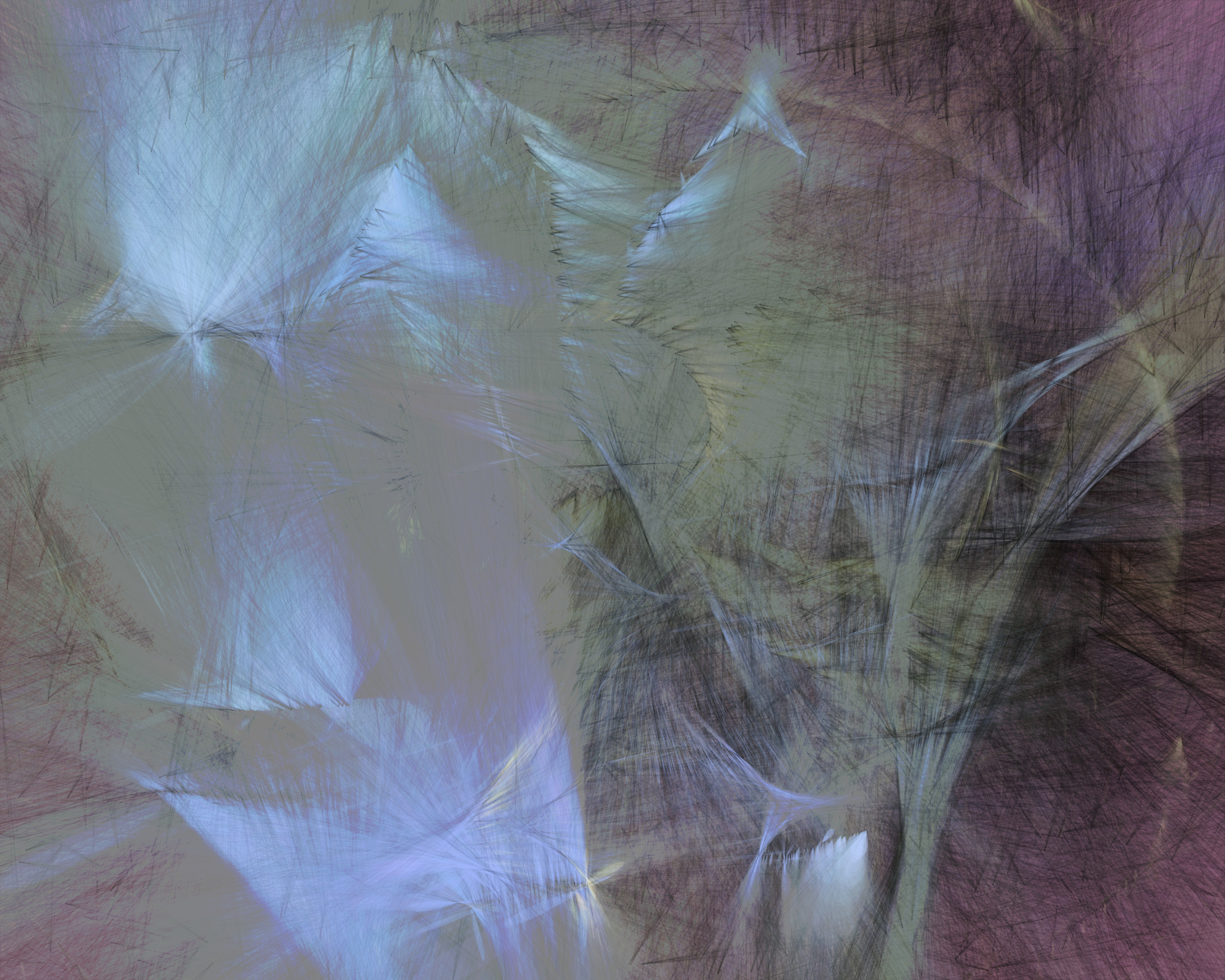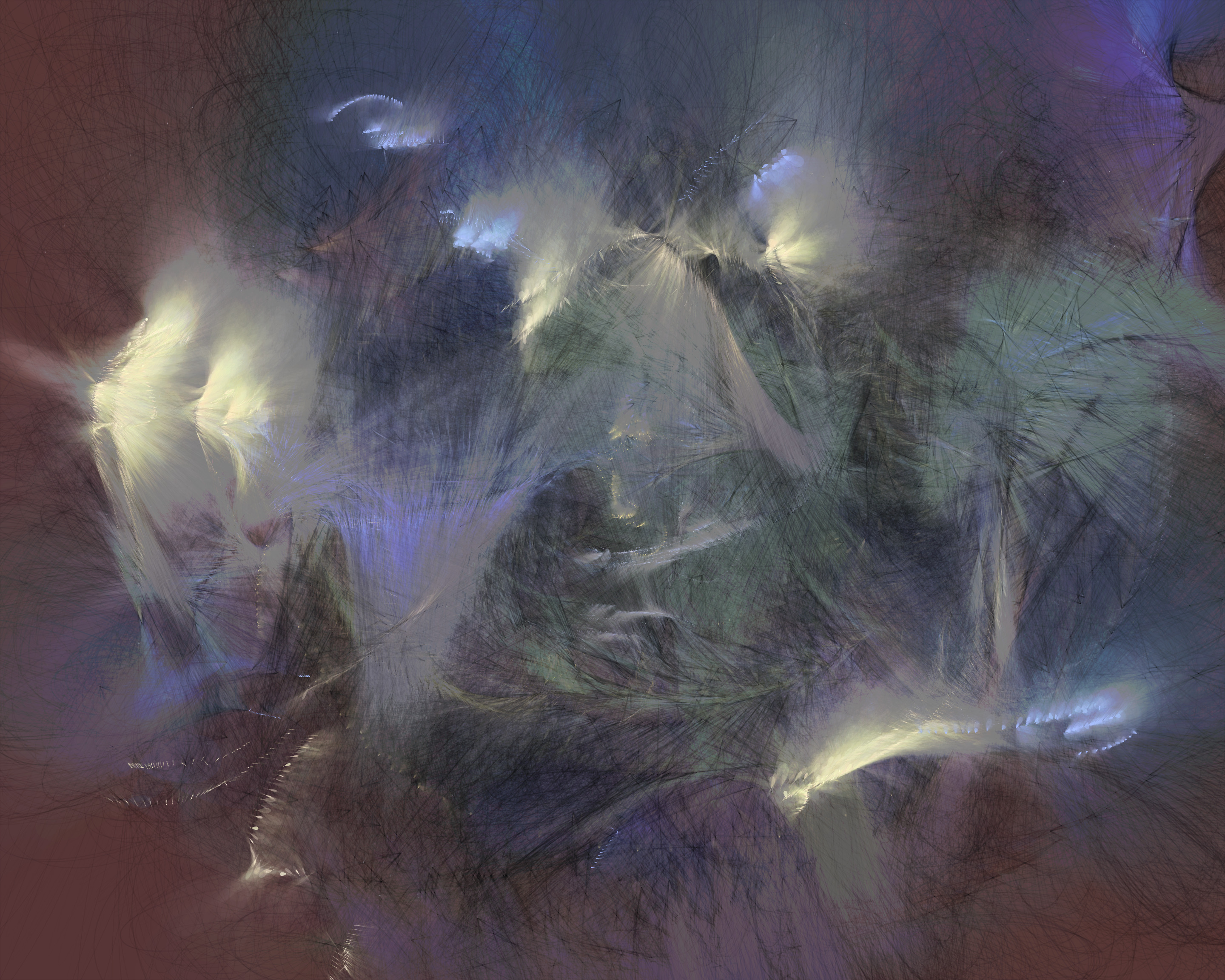Inspired by my encounters with neolithic cave paintings in Europe and indigenous pictographs flanking Canadian lakes, Mazinaw hints at etchings, drawings, and anthropomorphic forms. While Mazinaw draws on expressionists from Kandinsky to Lewis, it takes abstraction one step further: each piece is constructed by the artist indirectly, via a generative code, allowing the emergence of new undreamt-of forms.