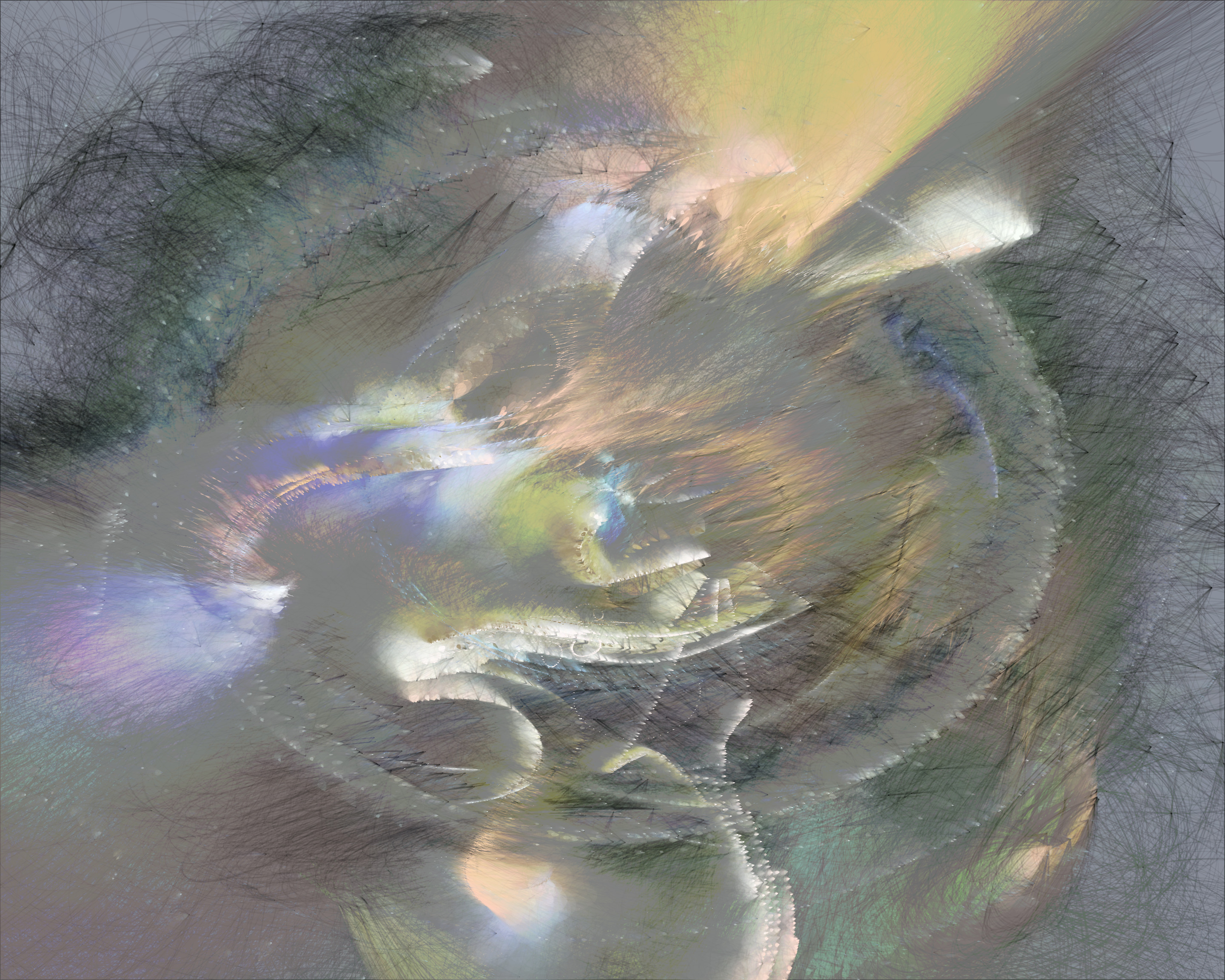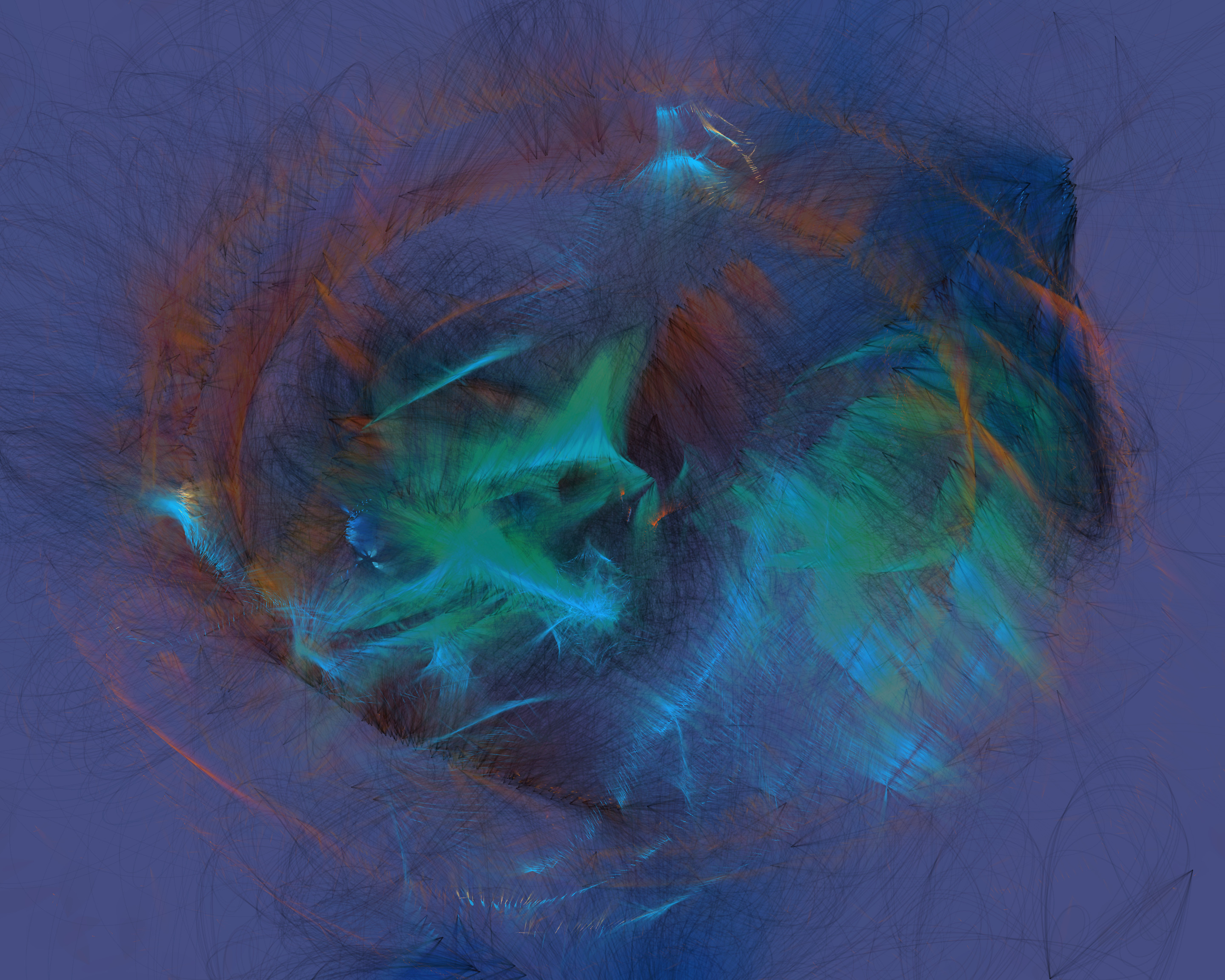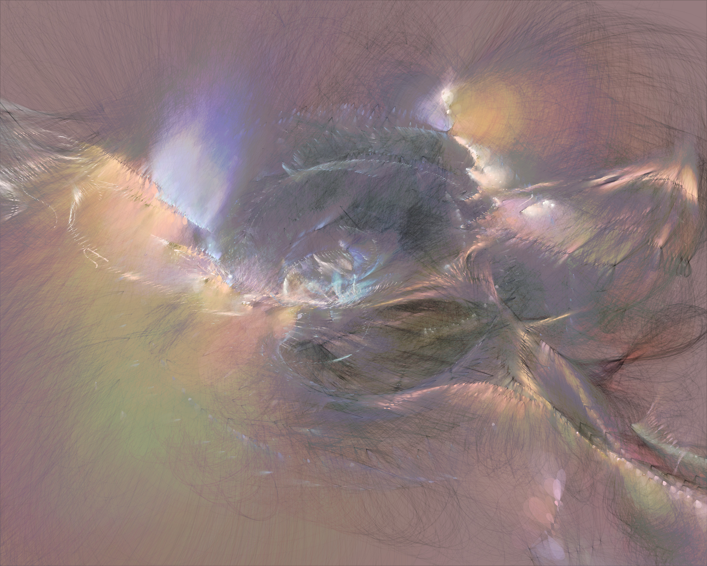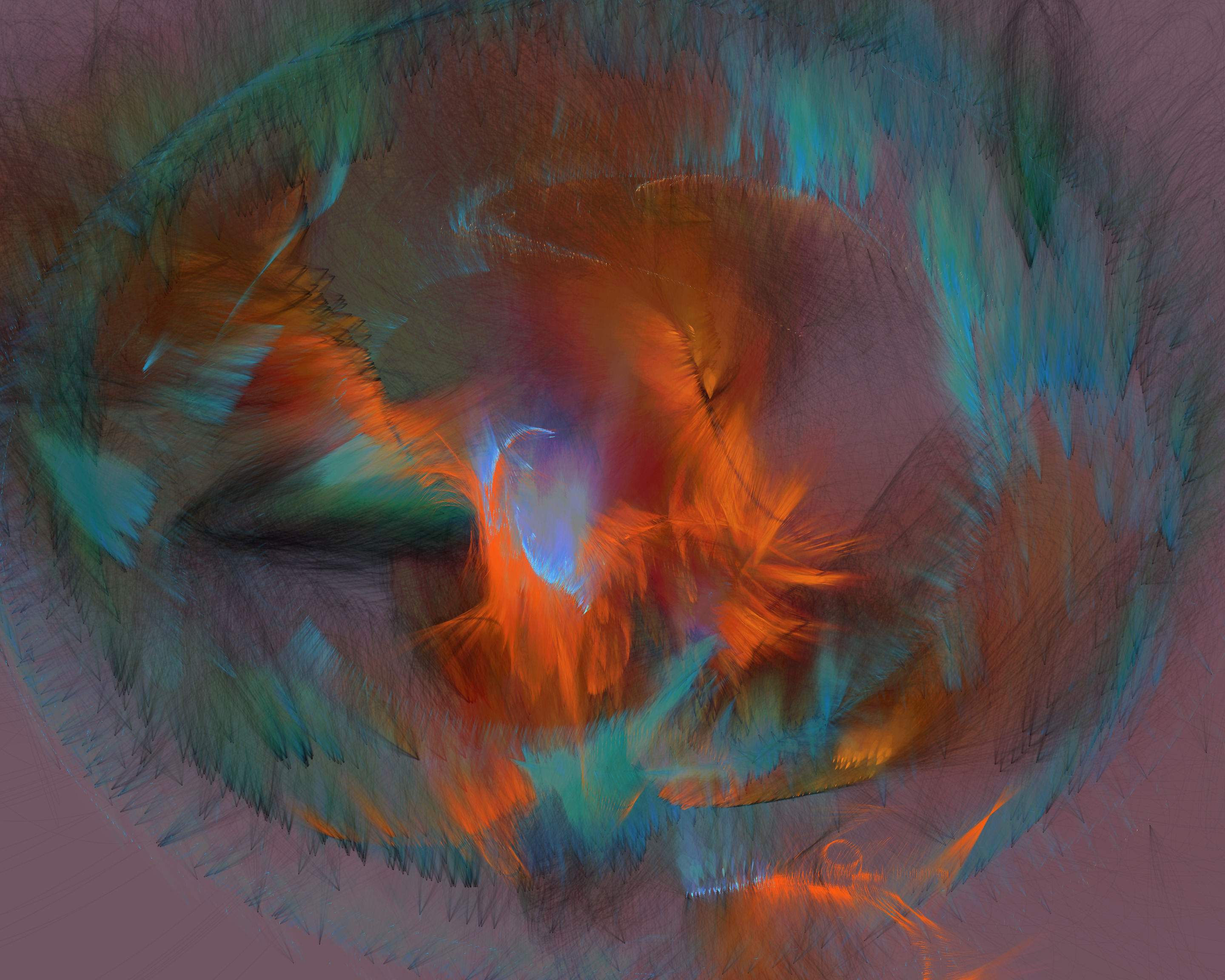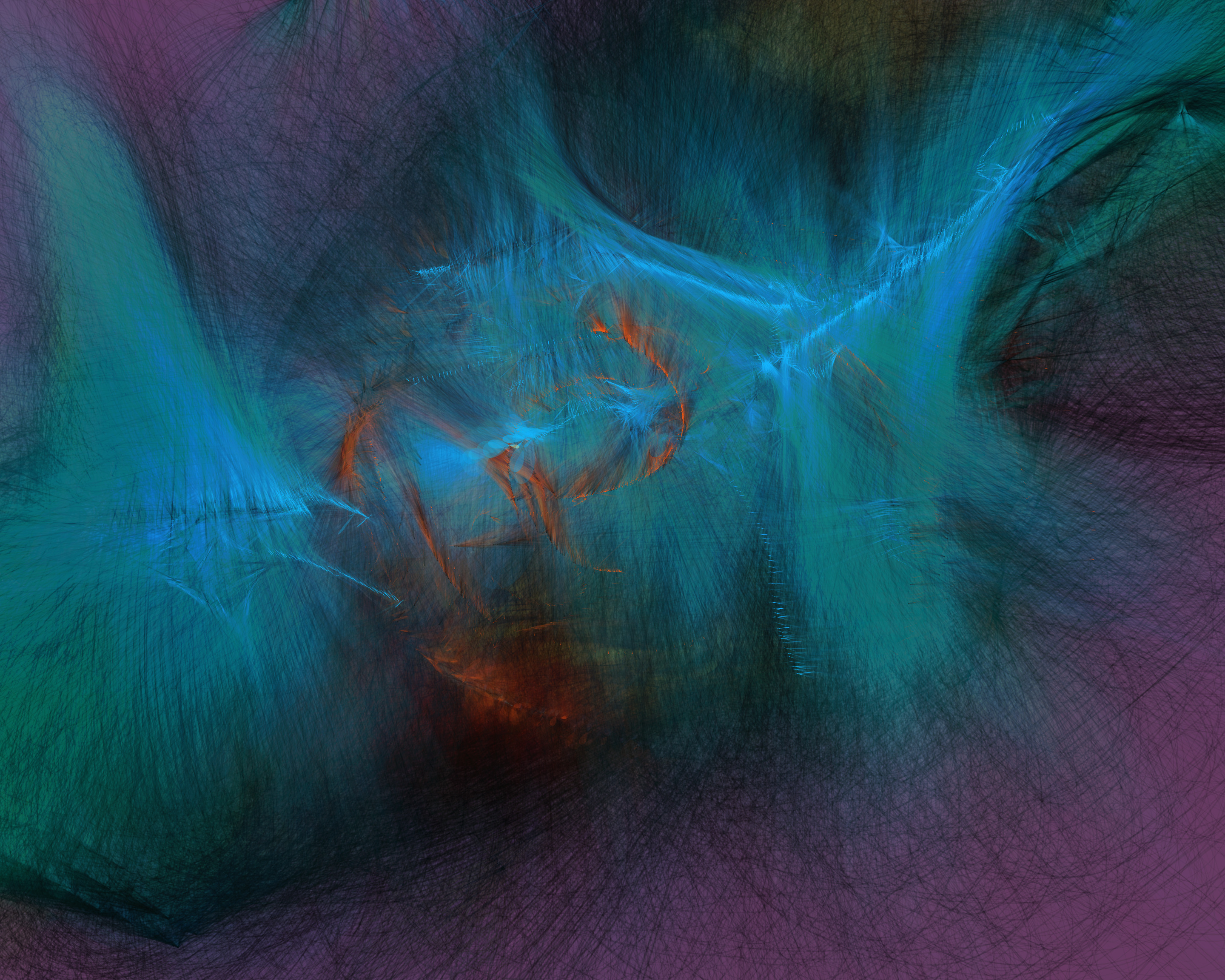 Inspired by my encounters with neolithic cave paintings in Europe and indigenous pictographs flanking Canadian lakes, Mazinaw hints at etchings, drawings, and anthropomorphic forms. While Mazinaw draws on expressionists from Kandinsky to Lewis, it takes abstraction one step further: each piece is constructed by the artist indirectly, via a generative code, allowing the emergence of new undreamt-of forms.
