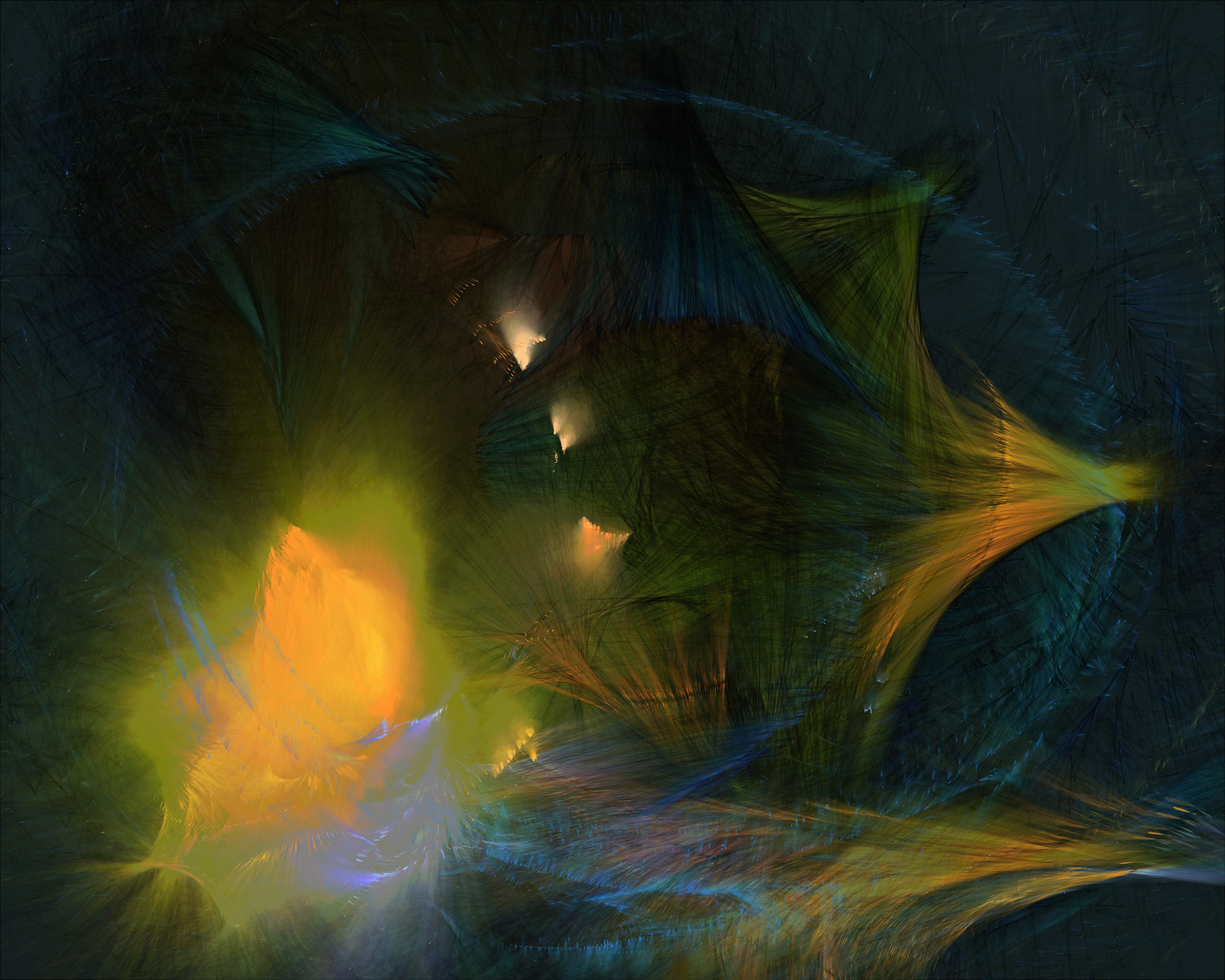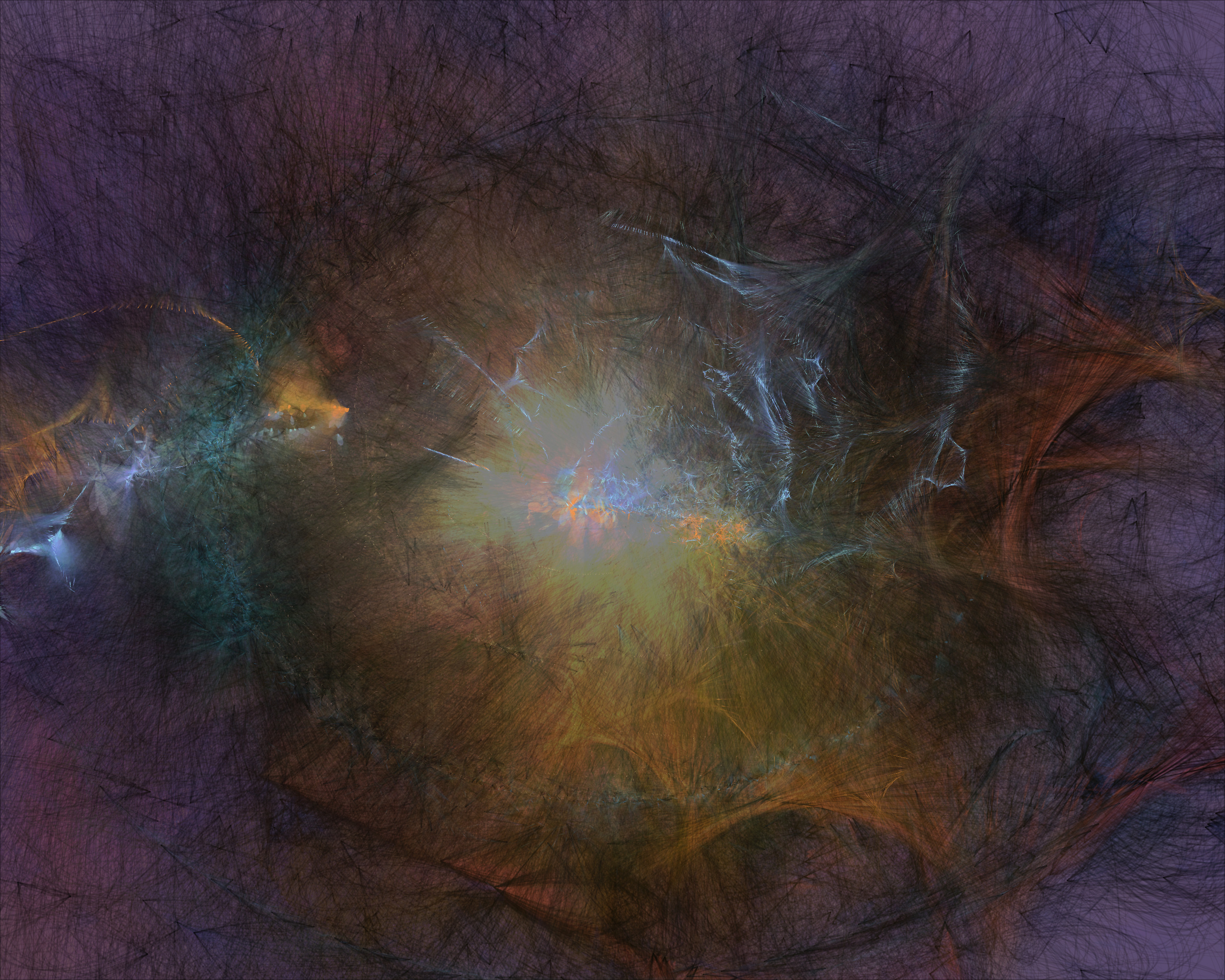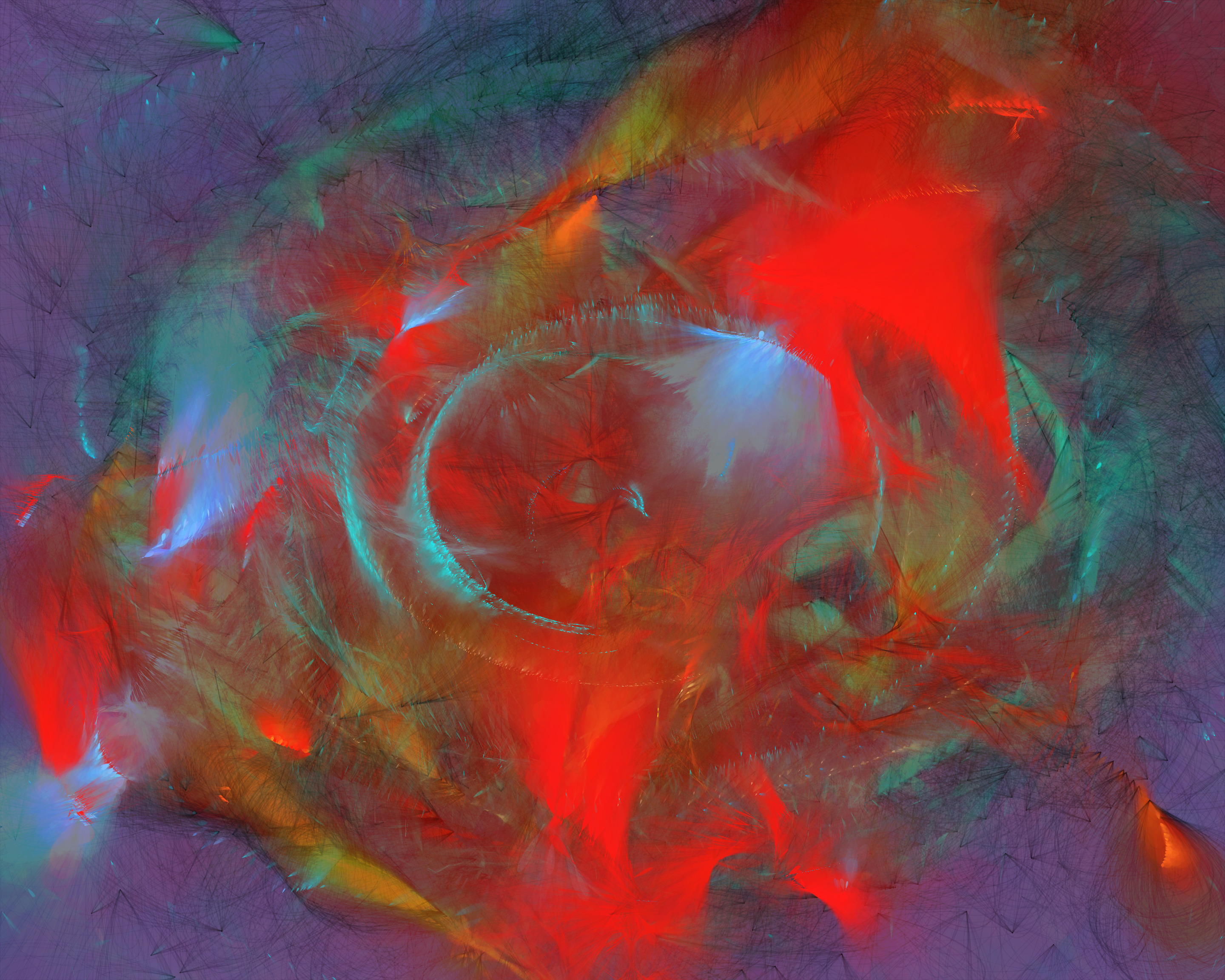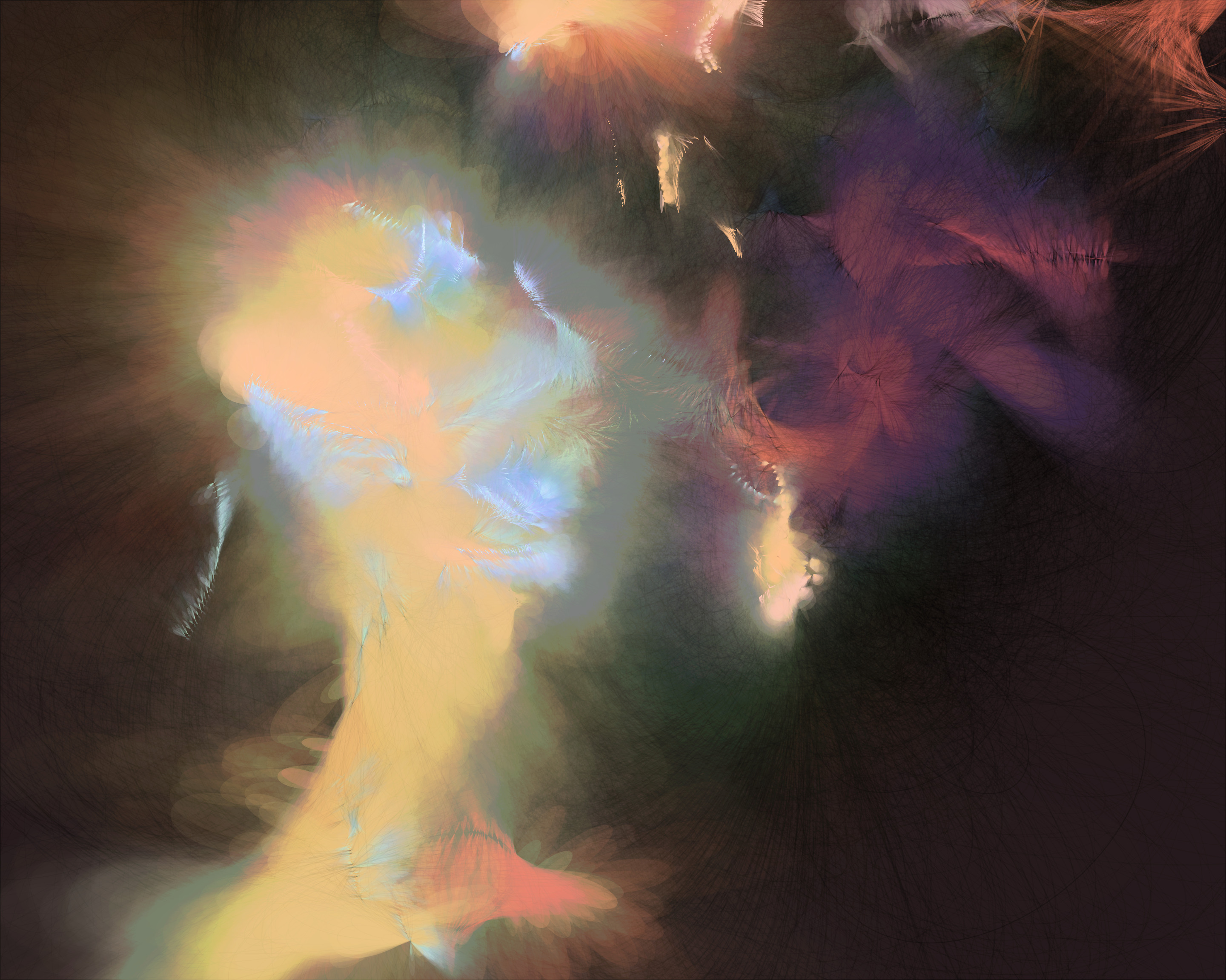 Inspired by my encounters with neolithic cave paintings in Europe and indigenous pictographs flanking Canadian lakes, Mazinaw hints at etchings, drawings, and anthropomorphic forms. While Mazinaw draws on expressionists from Kandinsky to Lewis, it takes abstraction one step further: each piece is constructed by the artist indirectly, via a generative code, allowing the emergence of new undreamt-of forms.