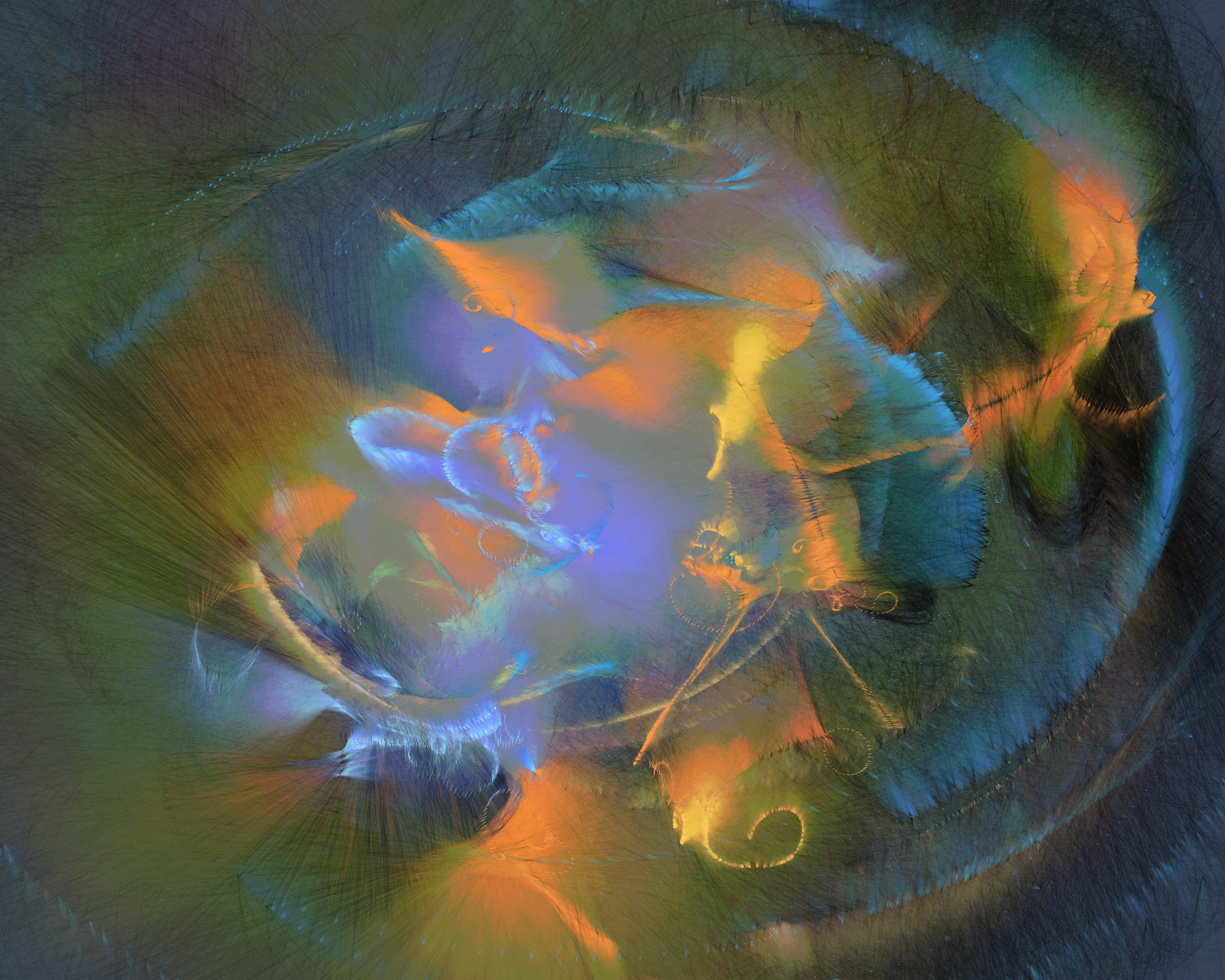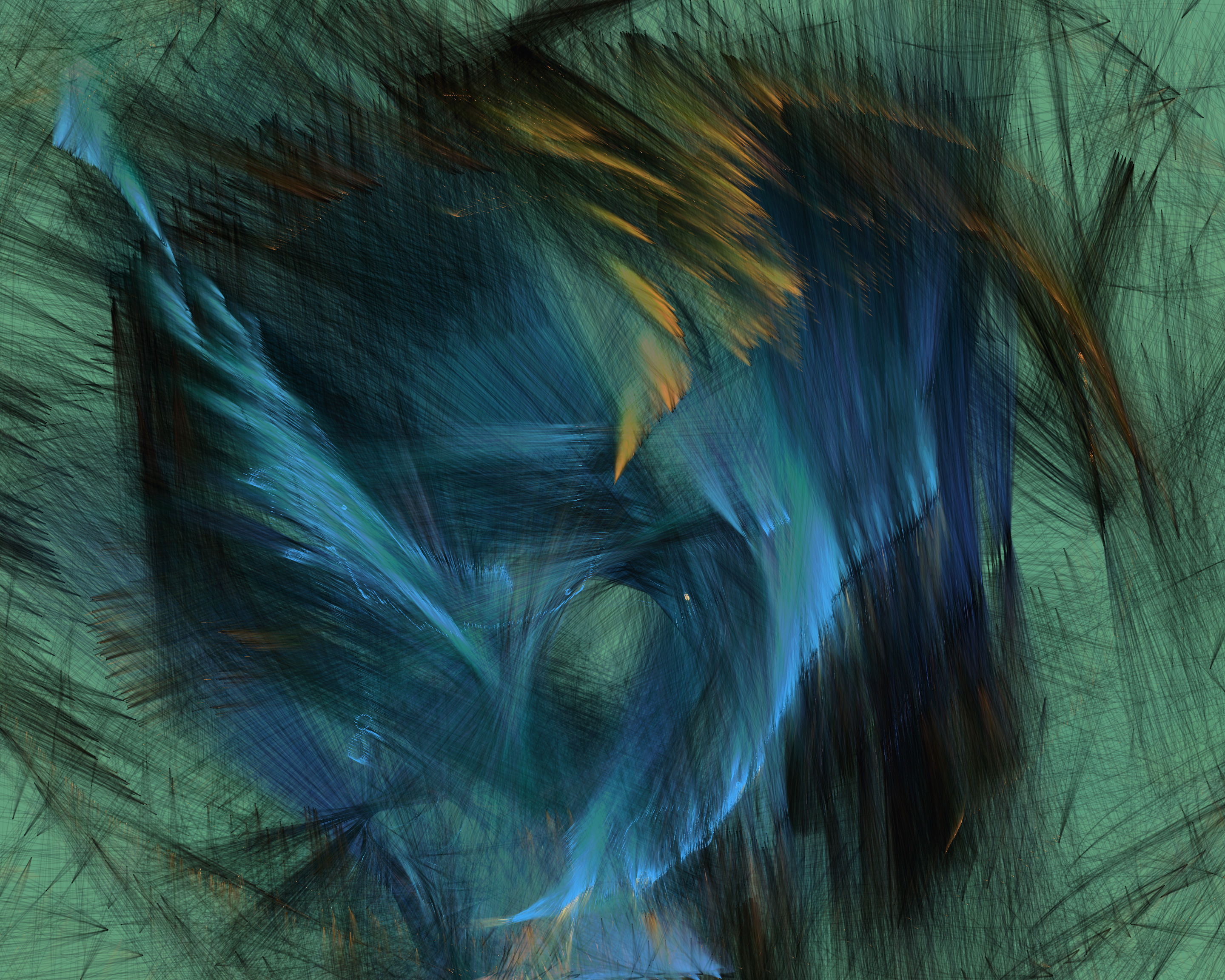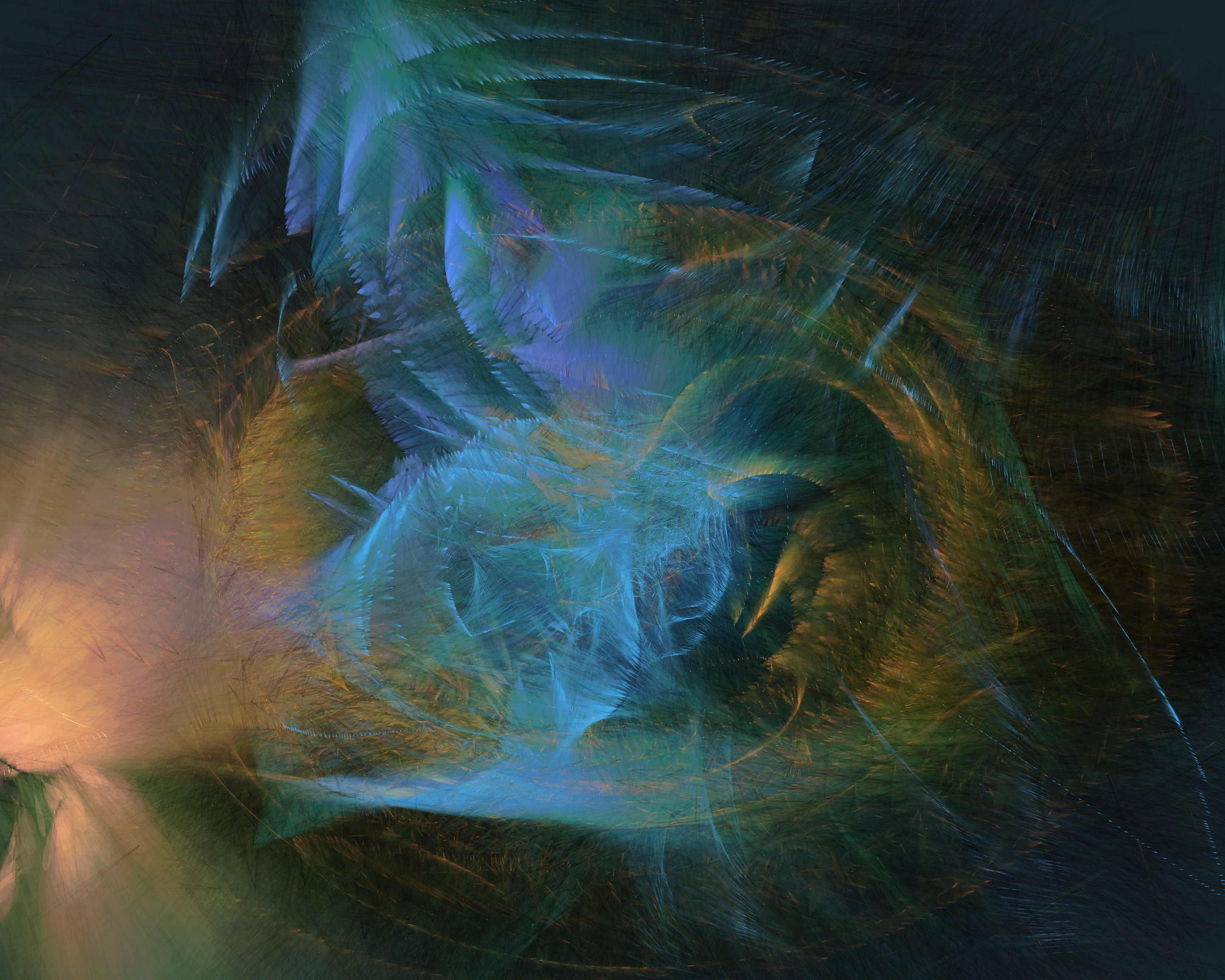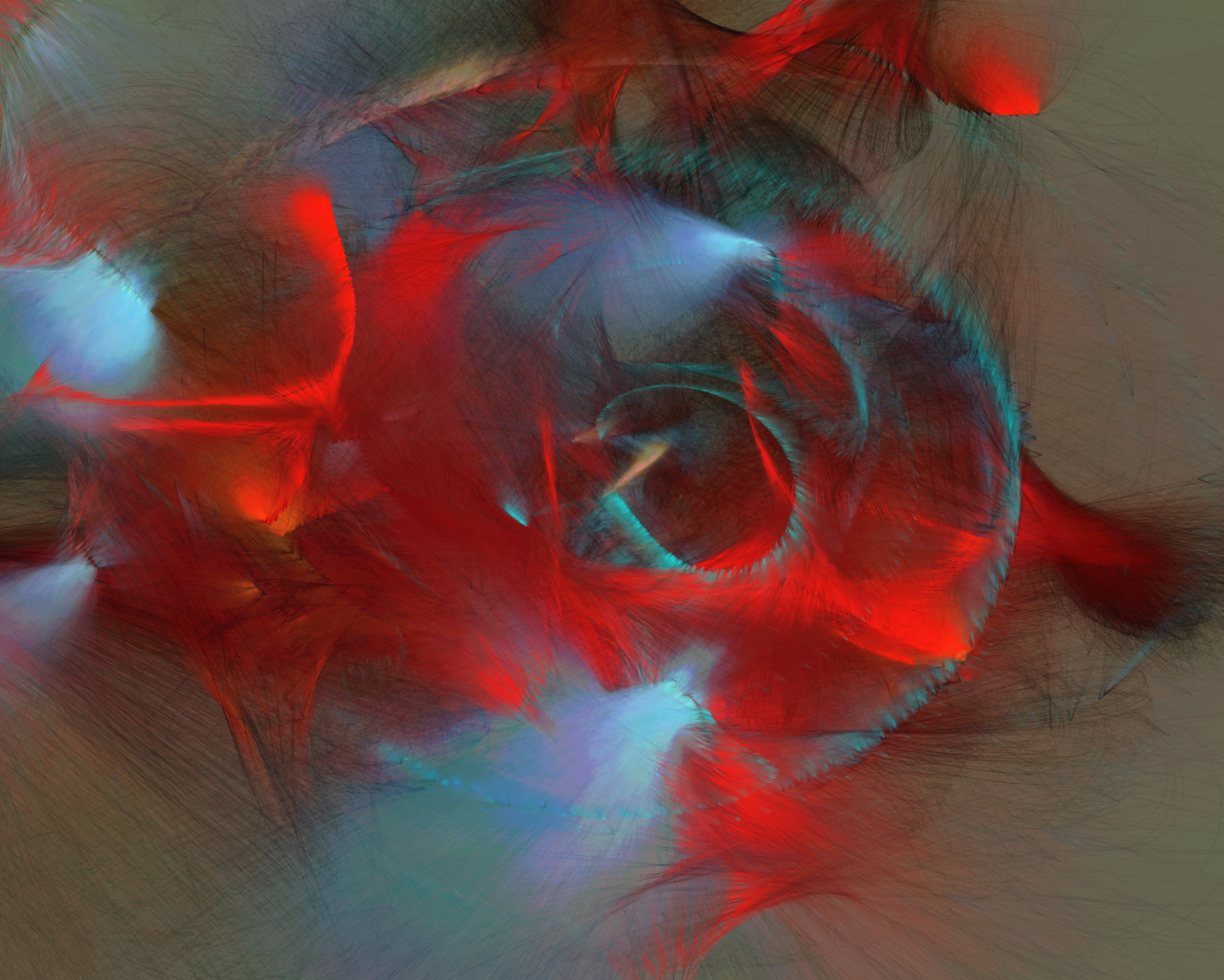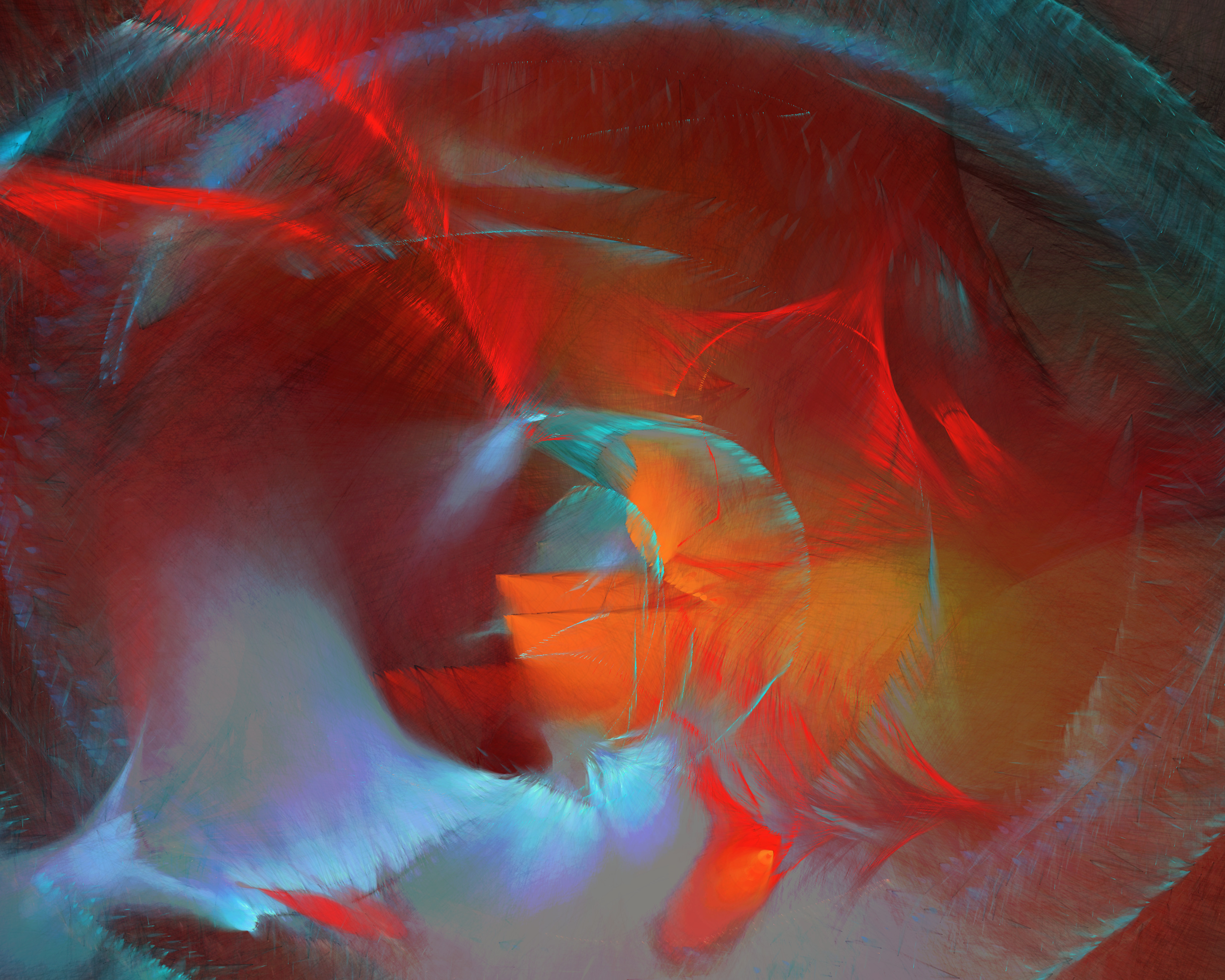 Inspired by my encounters with neolithic cave paintings in Europe and indigenous pictographs flanking Canadian lakes, Mazinaw hints at etchings, drawings, and anthropomorphic forms. While Mazinaw draws on expressionists from Kandinsky to Lewis, it takes abstraction one step further: each piece is constructed by the artist indirectly, via a generative code, allowing the emergence of new undreamt-of forms.